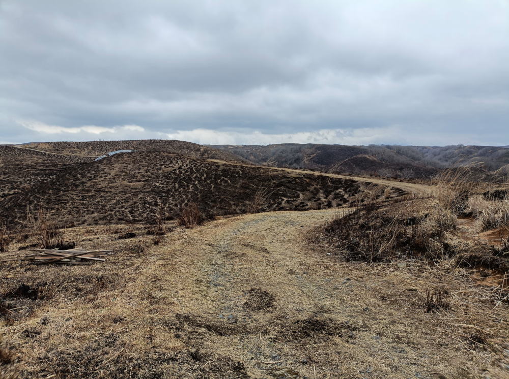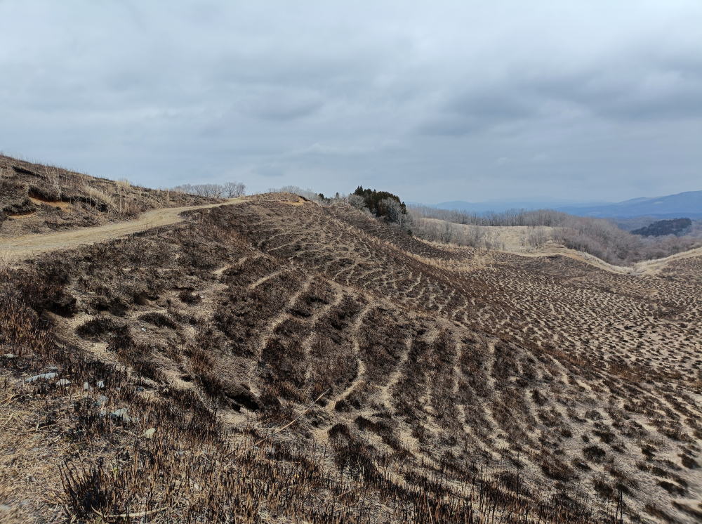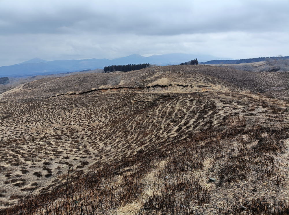 野焼後の阿蘇の大地、漆黒の黒土が大地のエネルギーを感じさせてくれます。